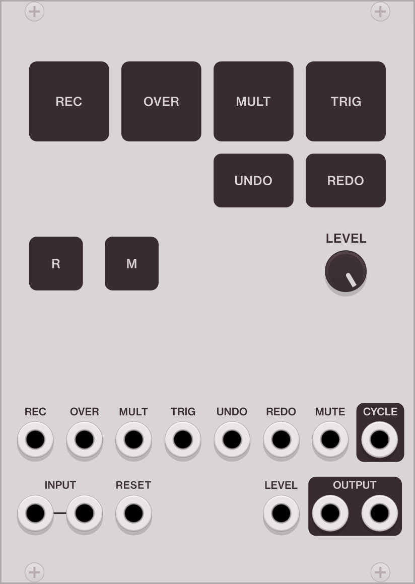 When a control is set to Toggle mode, sending a trigger pulse to its CV input will start recording. Send another pulse to end the recording. When a control is set to Sustain mode, recording will start when an open gate is received on the CV input. Recording will end when the gate closes.